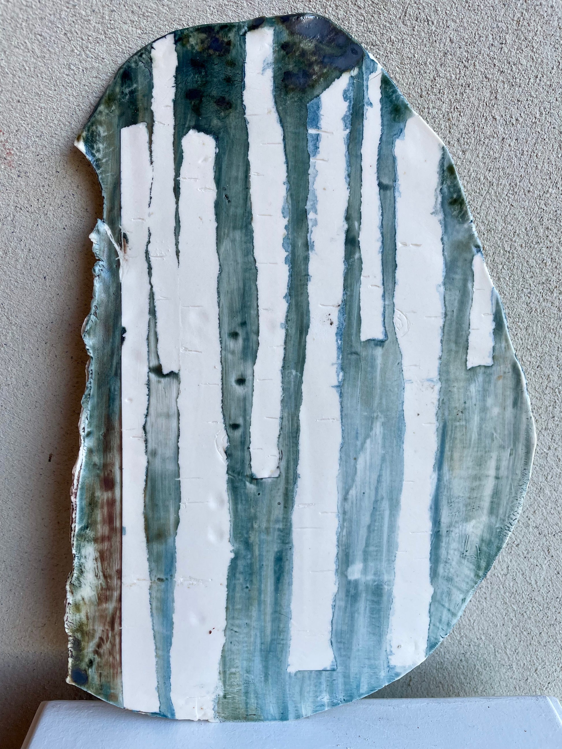 Dit schilderij op porselein is voor aan de muur